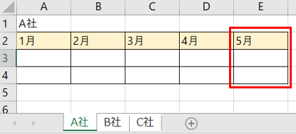 全てのシートを選択した状態で、5月の列を追加するだけで、